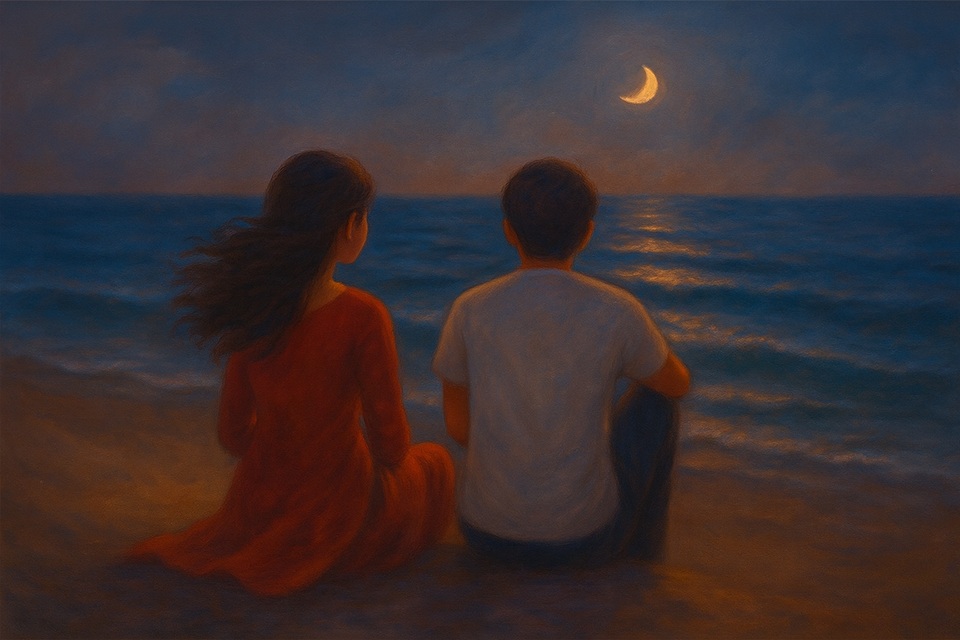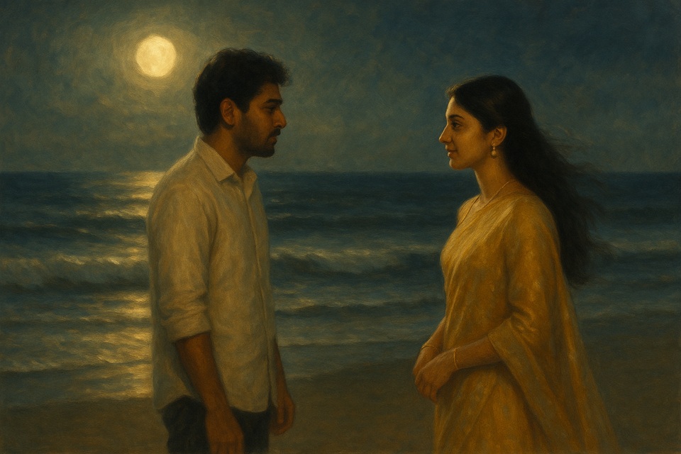 But I stood there helpless, watching her walk away, her wedding saree brushing against the wind, the full moon shining behind her, quietly reminding me of everything I never said.